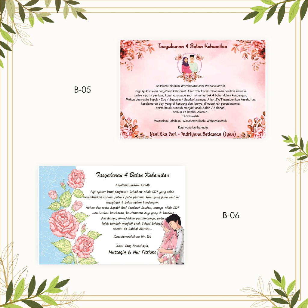 Bagi sebagian orang, ketika salah satu keluarganya ada yang hamil, maka di usia ke empat bulan dan/atau usia kehamilan 7 bulan maka mengadakan syukuran, . Allahumma ij'alhu waladan shâlihankarîman kâmilan 'âqilan 'alîman nâfi'an . Doa bersama dalam rangka tasyakuran 4 bulanan kehamilan irna rini mutiasari jazakumullah khairan katsiran wa jazakumullah ahsanal jaza Karena doa yang terbaik untuk keselamatan ibu dan jabang bayi yang dikandungnya, berasal dari ibu hamil itu sendiri, suami atau calon ayah, dan . Allahumma thowwil 'umrohu washohhih jasadahu wahasan khuluqohu wafshoh lisaanahu wa ahsin shoutahu liqirooatil hadiitsi walquraani bibarakati muhammadin .